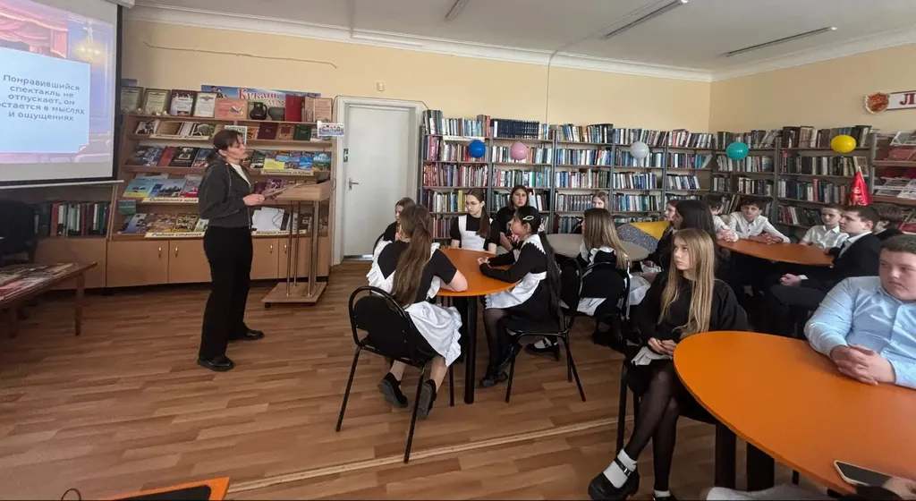 26 марта в Васюринской сельской библиотеке для учащихся 13-й школы было организовано путешествие в закулисье театрального искусства, приуроченное к 150-летнему юбилею Союза театральных деятелей России