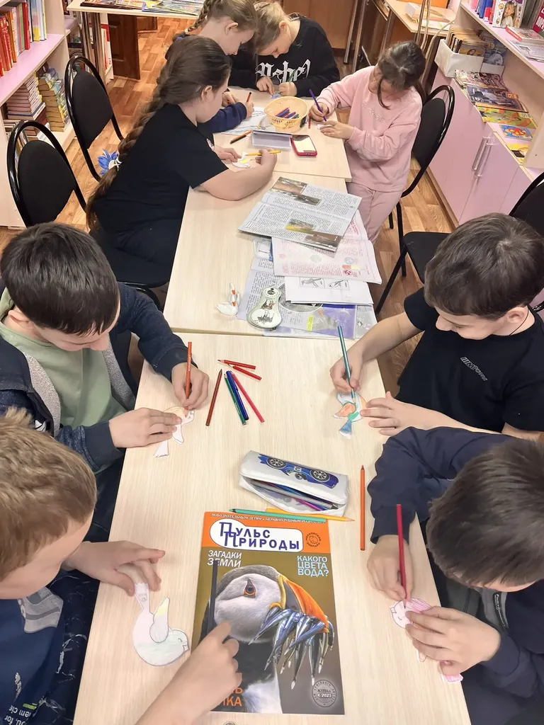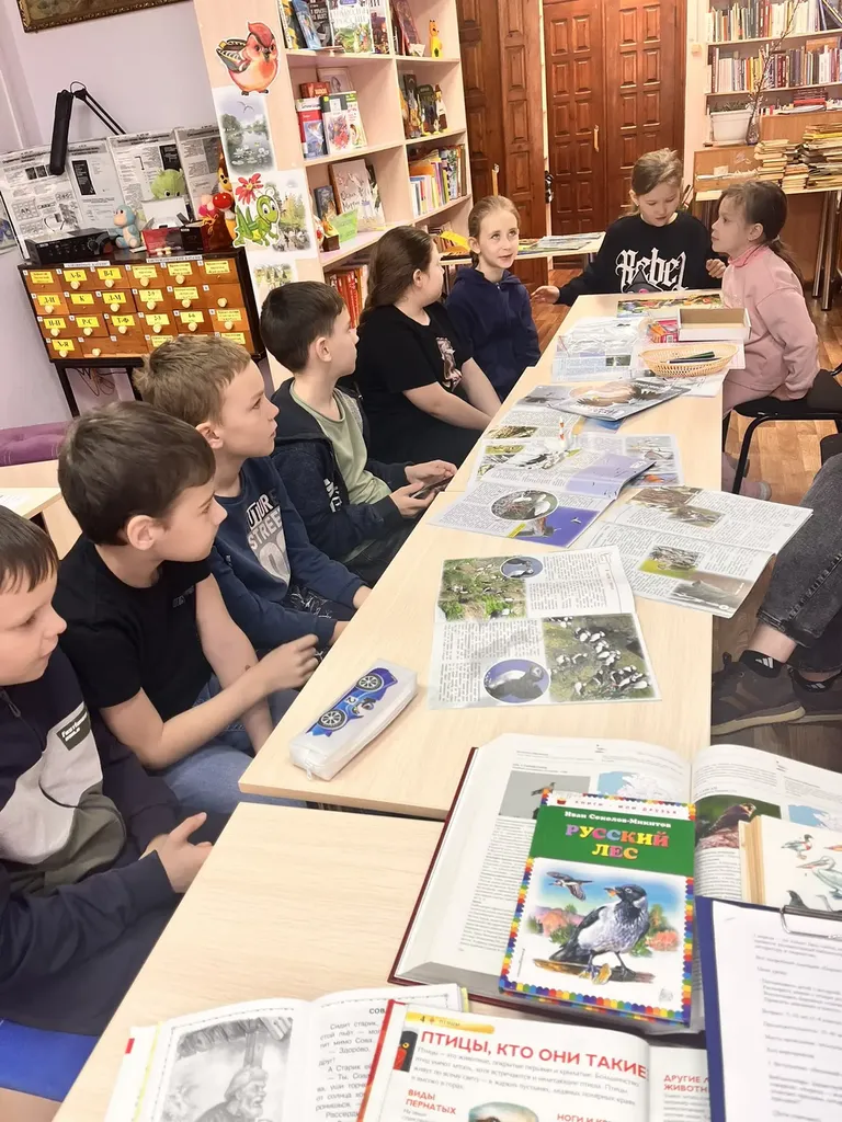 Ребята с интересом узнали о старинных птичьих приметах (оказывается, пернатые — лучшие предсказатели погоды!), а затем вместе с библиотекарем листали атлас-определитель, учась различать птиц по голосам, окраске и силуэтам.